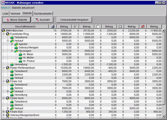 über aktuell offene, bearbeitete, gemahnte und ungemahnte